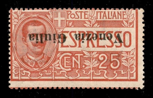 1919 - 25 cent (1a) con soprastampa capovolta - gomma integra - Diena (1.800)