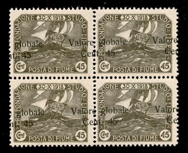 1920 - 45 su 45 cent Valore Globale (104 i) - quartina con soprastampe oblique - gomma integra - Cert. AG