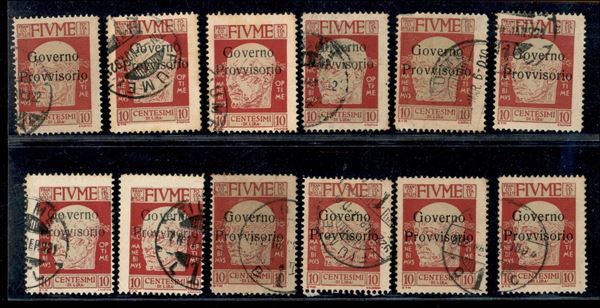 1921 - 10 cent Governo Provvisorio (176 + 178) - 12 usati - da esaminare