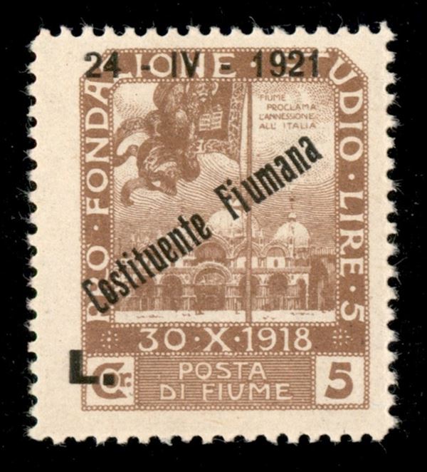 1921 - 5 lire Costituente (174 nc) - a spostata - gomma integra (1800)