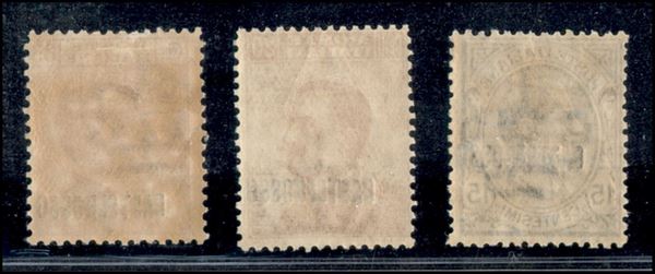 1922 - Soprastampe a destra - Tre valori (3+4dab+9) - gomma originale - 2 valori non catalogati per questa varietà