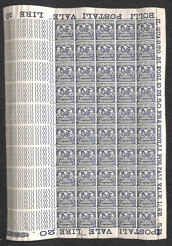 1928 - 10 cent Stemmi (2) - intero foglio di 50 con bordi integri - gomma integra (2.000++)