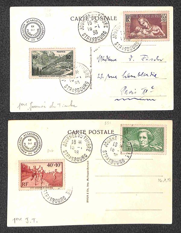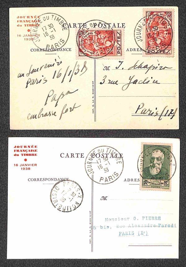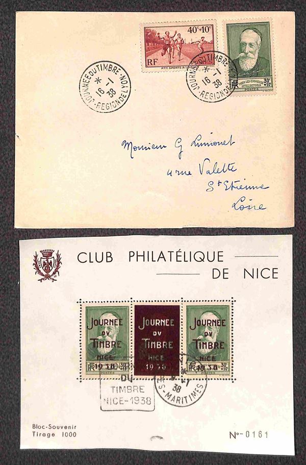 1938 - Una busta + sette cartoline + un foglietto - affrancature del periodo + annulli speciali