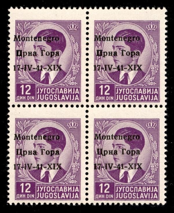 1941 - 12 din (11i) in quartina con soprastampa a sinistra + errori pd + pa in basso - gomma integra