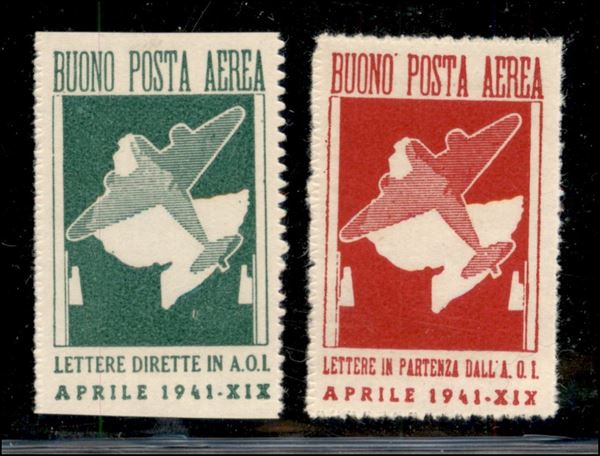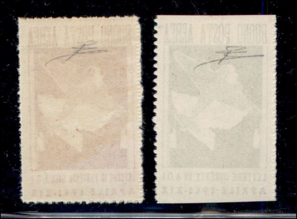 1941 - Buoni di Posta Aerea (1a/2) - serie completa con verde giallo non dentellato orizzontalmente - senza gomma/gomma integra - molto belli - cert. Diena