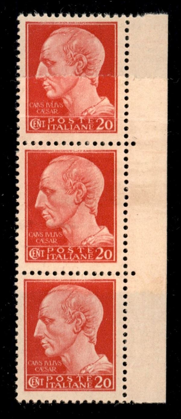 1945 - 20 cent Imperiale (537b) - striscia verticale di 3 bordo foglio su carta ricongiunta - gomma integra
