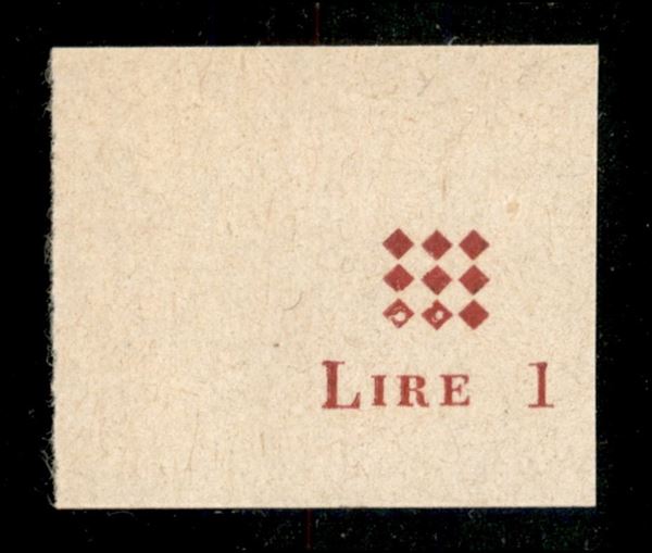 1945 - Prova - 1 lira (tipo 1B - CEI PS2) bordo foglio - nuovo senza gomma - cert. Raybaudi