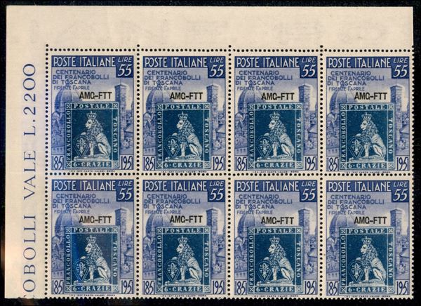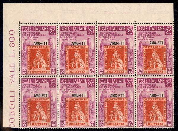 1951 - Toscana (108/109) - serie completa in blocchi di otto angolo di foglio - gomma integra