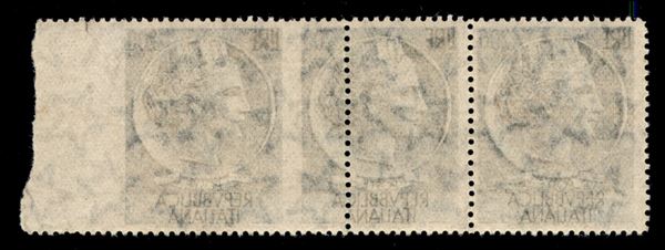 1957 - 200 lire Turrita (816 + 816eb) - striscia di 3 bordo foglio con dentellatura spostata a sinistra (sulla coppia di detra) - gomma integra