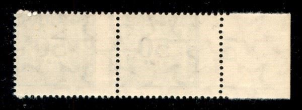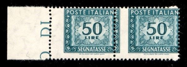 1957 - Segnatasse - 50 lire (118/IIf) - coppia orizzontale bordo foglio - dentellatura verticale spostata e sul bordo (prima della fila) - gomma integra