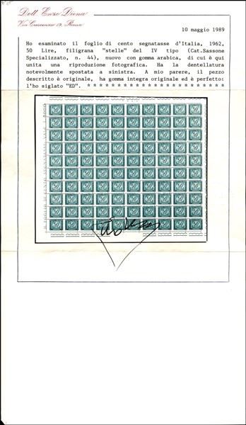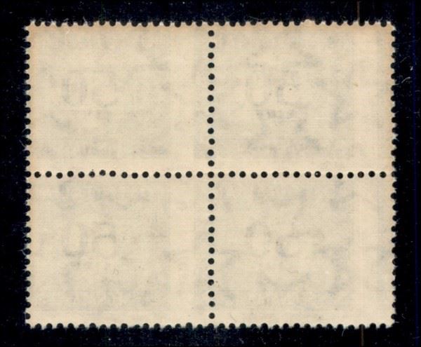 1957 - Segnatasse - 50 lire (118/IIf) - quartina con dentellatura verticale spostata - gomma integra (1.650++)