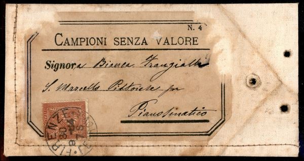 2 cent (15) isolato su bustina telata (Campione senza Valore) da Firenze a S. Marcello Pistoiese del 30.9.84