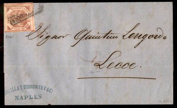 2 grana rosa carminio (5d) su lettera da Napoli a Lecce del 30.9.58