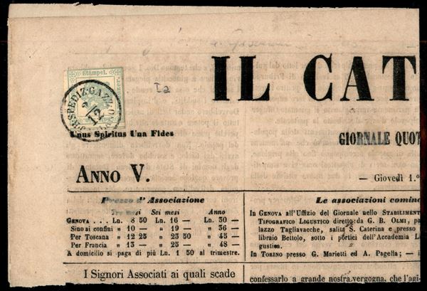 2 kreuzer (1 Segnatasse - primo sottotipo) appena toccato in alto a destra - testatina di giornale da Milano del 2.12.1853