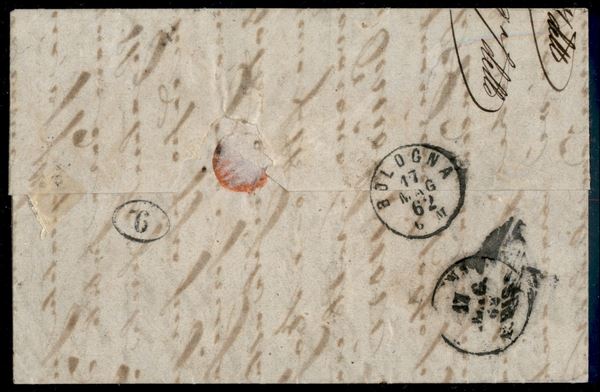 20 cent indaco violaceo scuro (15Ea) su lettera da Genova a Bologna del 16.5.62 - A. Diena