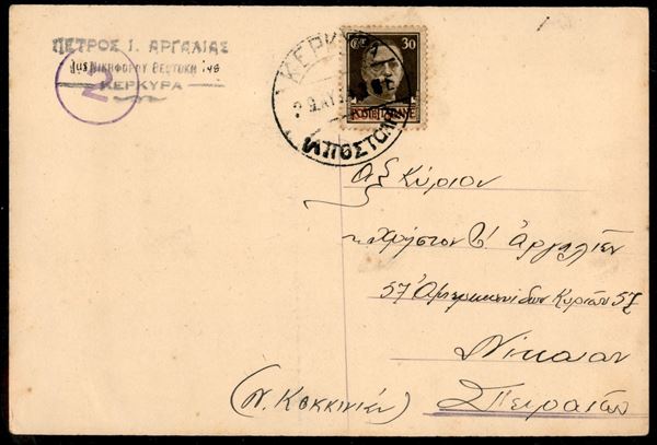 30 cent (5) su cartolina da Corfù del 29.8.1943