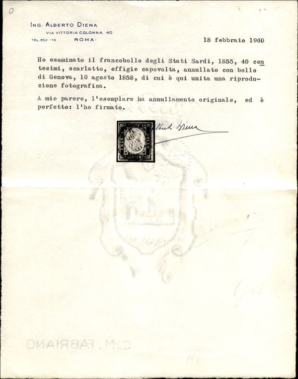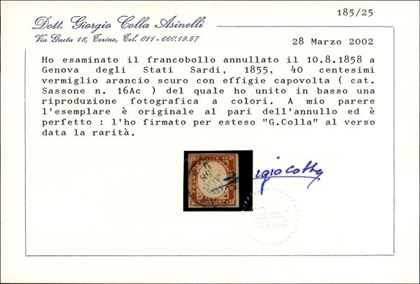 40 cent (16Ac) con effige capovolta - usato - cert. Colla + cert. Diena