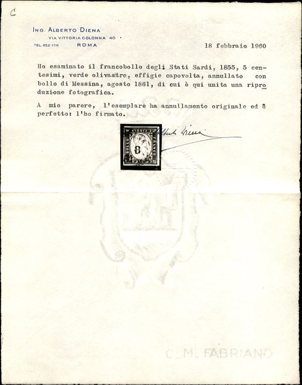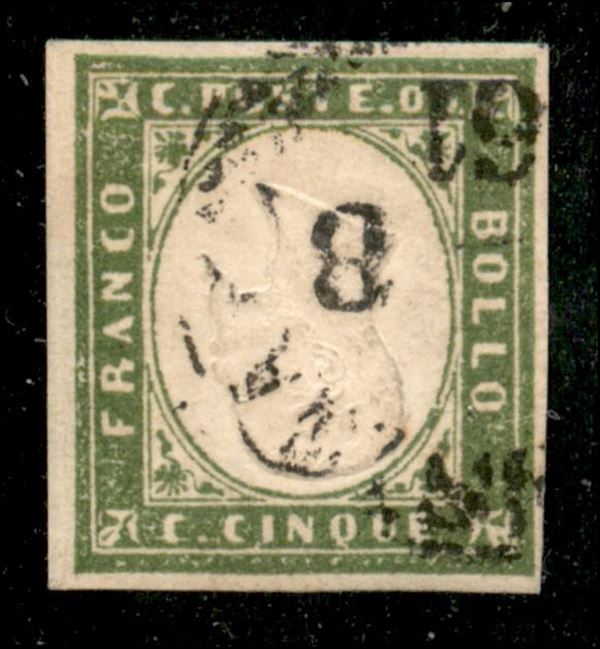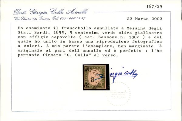 5 cent (13Cc) con effigie capovolta - usato - cert. Colla + cert. Diena (8.500)