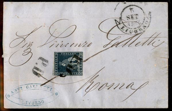 6 crazie (7) stretto a destra - lettera da Livorno a Roma del 5.9.1855