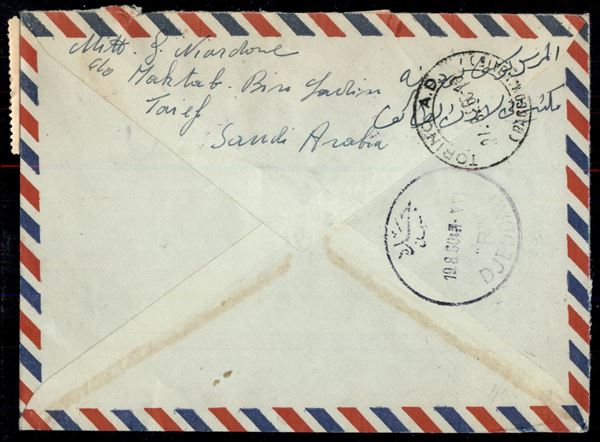 Aerogramma da Taif a Torino del 17.8.1960 con affrancatura multipla