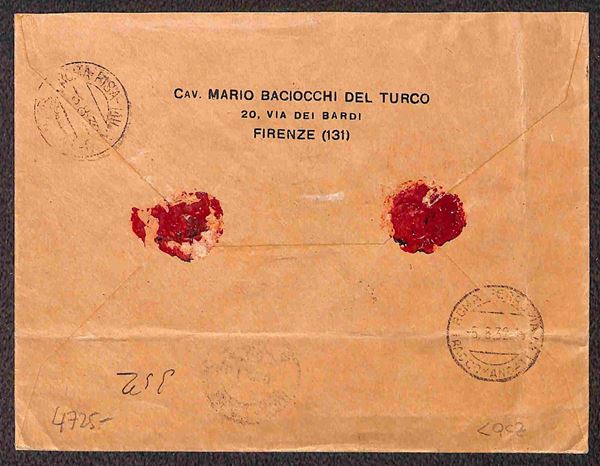 Aerogramma raccomandato affrancato con il 100 lire Dante Alighieri (41) + 2,75 lire Dante (312) da Roma a La Haye (Olanda) del 6.8.32 (giorno d'emissione del 100 lire) - Gazzi