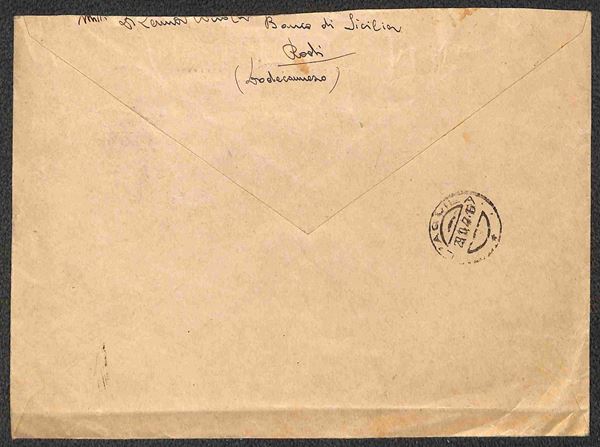 Amministrazione Militare Greca Dodecaneso - Bustone affrancata con i valori della serie soprastampati (sei 1+2/7) da Rodi a l'Aquila del 22.10.47 - molto0 bella e rara