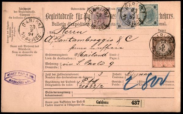 Bollettino di Spedizioni da Garionz a Milano del 23.2.91