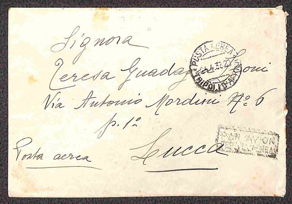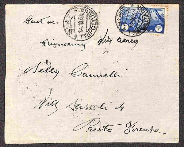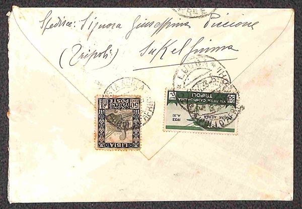 Busta da Tripoli (24.4.33) a Lucca con affrancatura al retro (51 + 8 Aerea) + busta da Sirt (14.10.32) a Firenze (13 Aerea - Tripolitania)