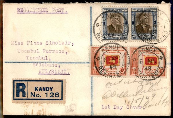 Ceylon - Raccomandata FDC da Kandy a Brisbane del 6.4.1949