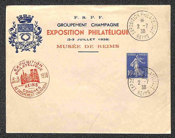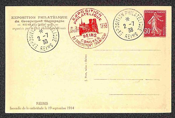Champagne - Due buste e una cartolina - Reims 2.7.38