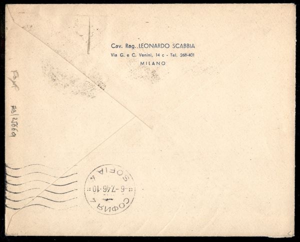 Coppia 5 lire Imperiale senza fasci + singolo su lettera per la Bulgaria da Milano 29.6.1946 a Sofia con bollo di arrivo - penultimo giorno di validità per questo francobollo