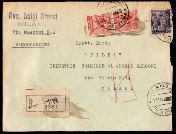 Coppia del 75 cent (499) + 50 cent (507) su raccomandata per cittą - Milano 24.11.1944