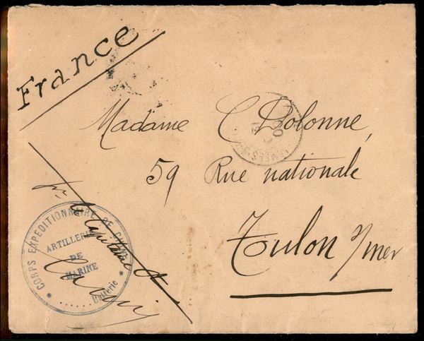 Corpo di spedizione in Cina/Artiglieria di Marina – Busta per Toulon del 13.11.00