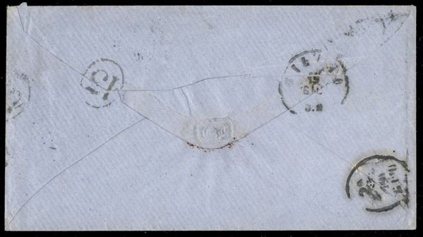 De La Rue - 40 cent (20) su busta da Ancona a Milano del 18.6.1865