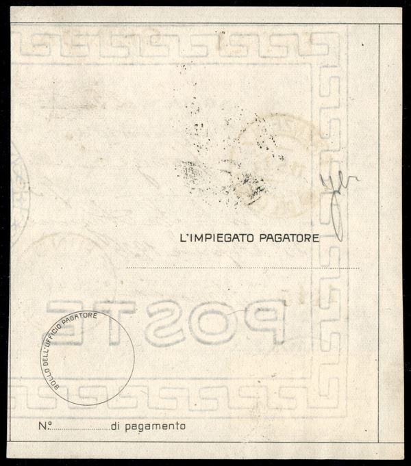 Due 20 cent (1) su bollettino vaglia da Ghinda del 26.4.26 (1.600)