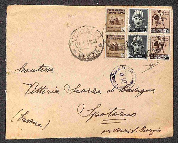 Due buste da Sottomarina a Spotorno del gennaio/febbraio 1945 con affrancature multiple - Sorani