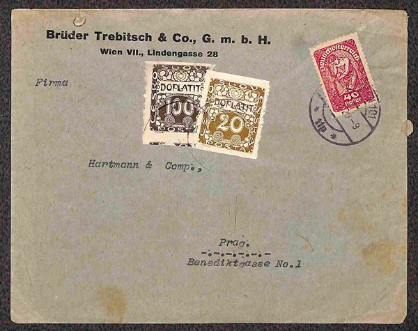 Due buste da Vienna a Praga del 1920 tassate in arrivo
