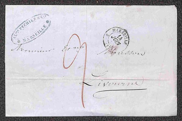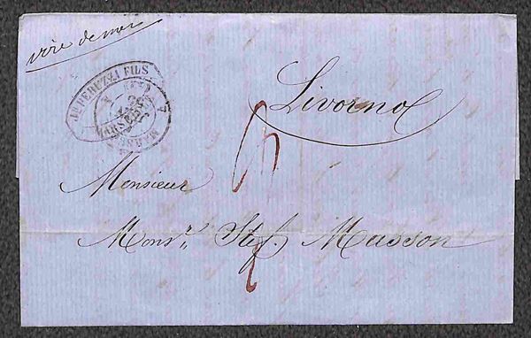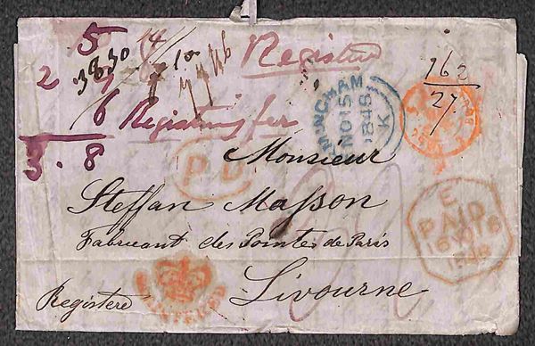 Due lettere da Birminghan (1848 - 1856) e da Marsiglia (1855) per Livorno - non affrancate e tassate
