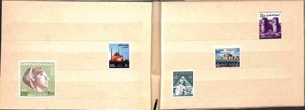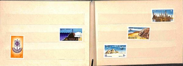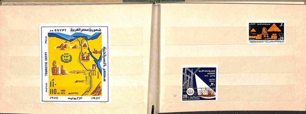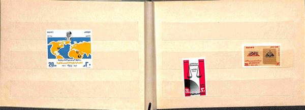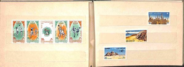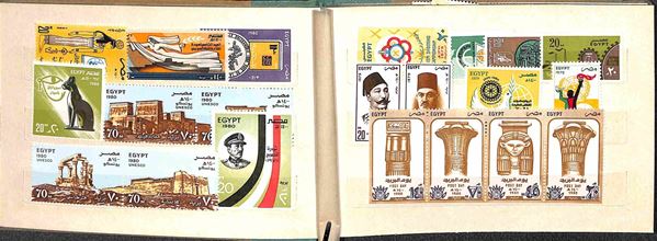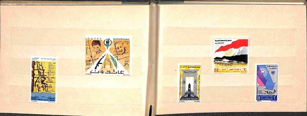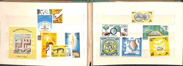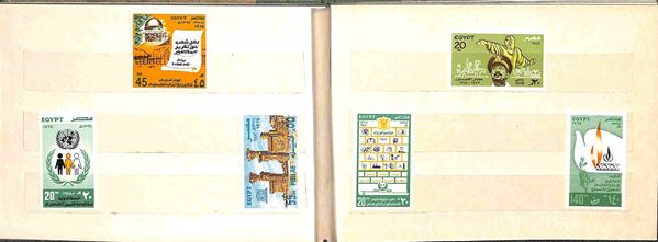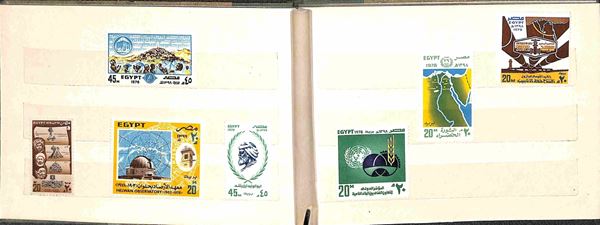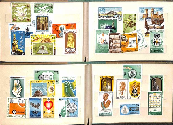 EGITTO - 1975/1980 - Piccola collezione di valori e serie complete del periodo montate in 4 piccoli raccoglitori dell'autorità postale egiziana - gomma integra