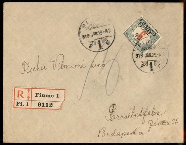 Franco 45 su 6 filler (29cbb) - sbarretta a cavallo - busta raccomandata per Budapest del 29.1.19