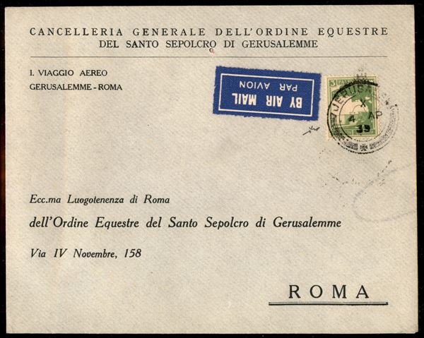 Gerusalemme Roma 4.4.33 (Longhi 2807) - aerogramma del volo speciale - Chiavarello