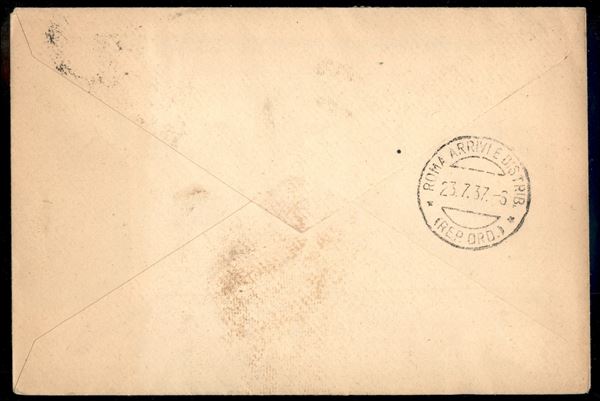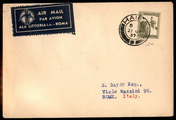 Haifa Roma 21.7.37 (Longhi 3696) - aerogramma del primo volo - 48 volati - Chiavarello