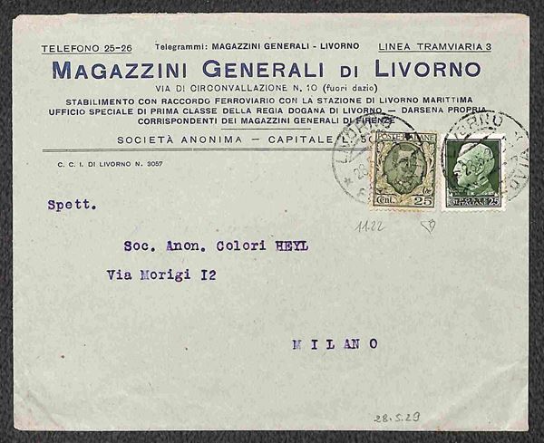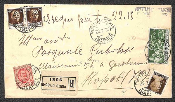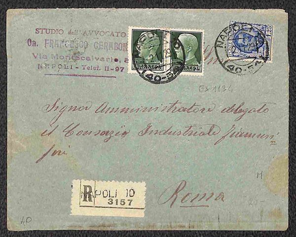 Insieme di quattro lettere con affrancatura mista Floreale con Imperiale - una in tariffa lettere con valori gemelli e tre raccomandate di cui una contrassegno - bell'insieme - ex coll. Provera