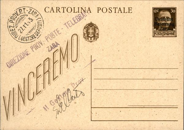 Intero postale da 30 cent soprastampato (C25) - Zara 27.11.43 - Molto bello