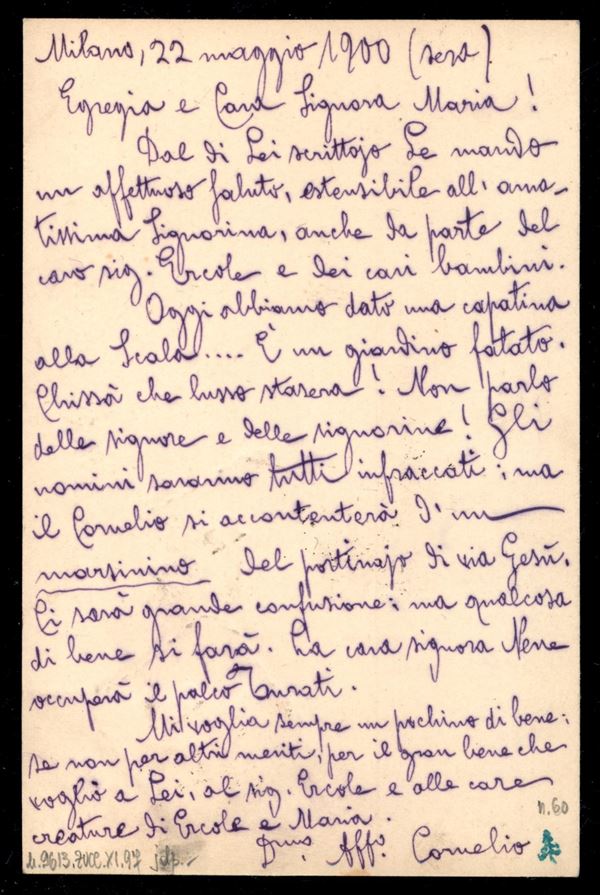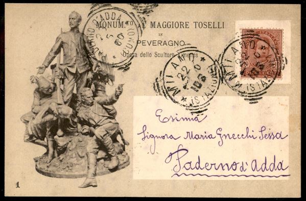 Intero postale Maggior Toselli (CC23 senza impronta del francobollo) affrancato con 10 cent Umberto I (60) da Milano 22.5.00 per Paderno d'Adda - ex. coll. Provera