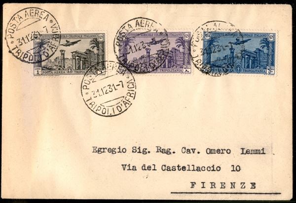 Istituto Agricolo (17/19 - Aerea) su aerogramma da Tripoli a Firenze del 31.12.31 (1.850)