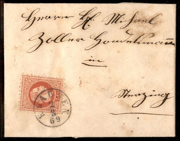 Klausen (azzurro - P.ti 8) - 5 kreuzer (33) su letterina per Sterzing del 2.8.69