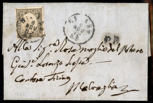 Lettera affrancata con 10 cent (14C) con ampi margini da Milano 6 NOV 62 per il Canton Ticino