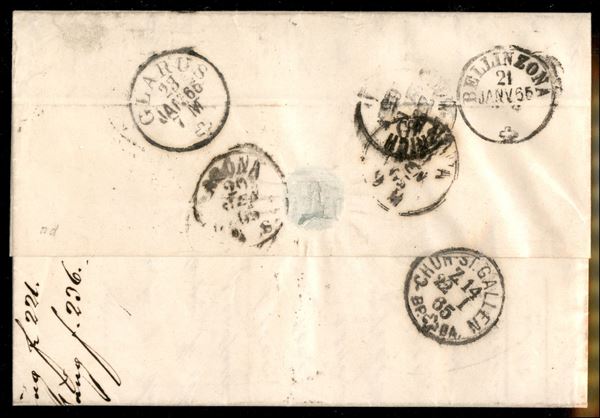Lettera affrancata con 30 cent (19) ben centrato da Napoli per Glarus del 16 GEN 65 - bolli di transito