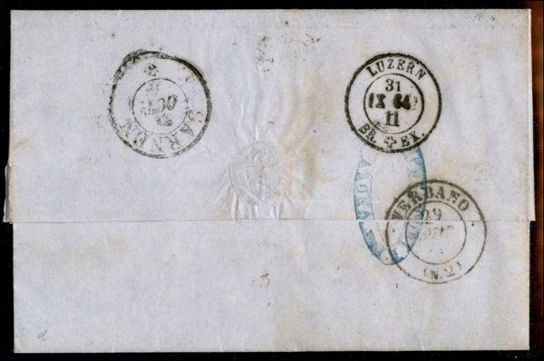 Lettera affrancata con coppia orizzontale del 15 cent (L18) da Verbano 29 OTT 64 per Kerns